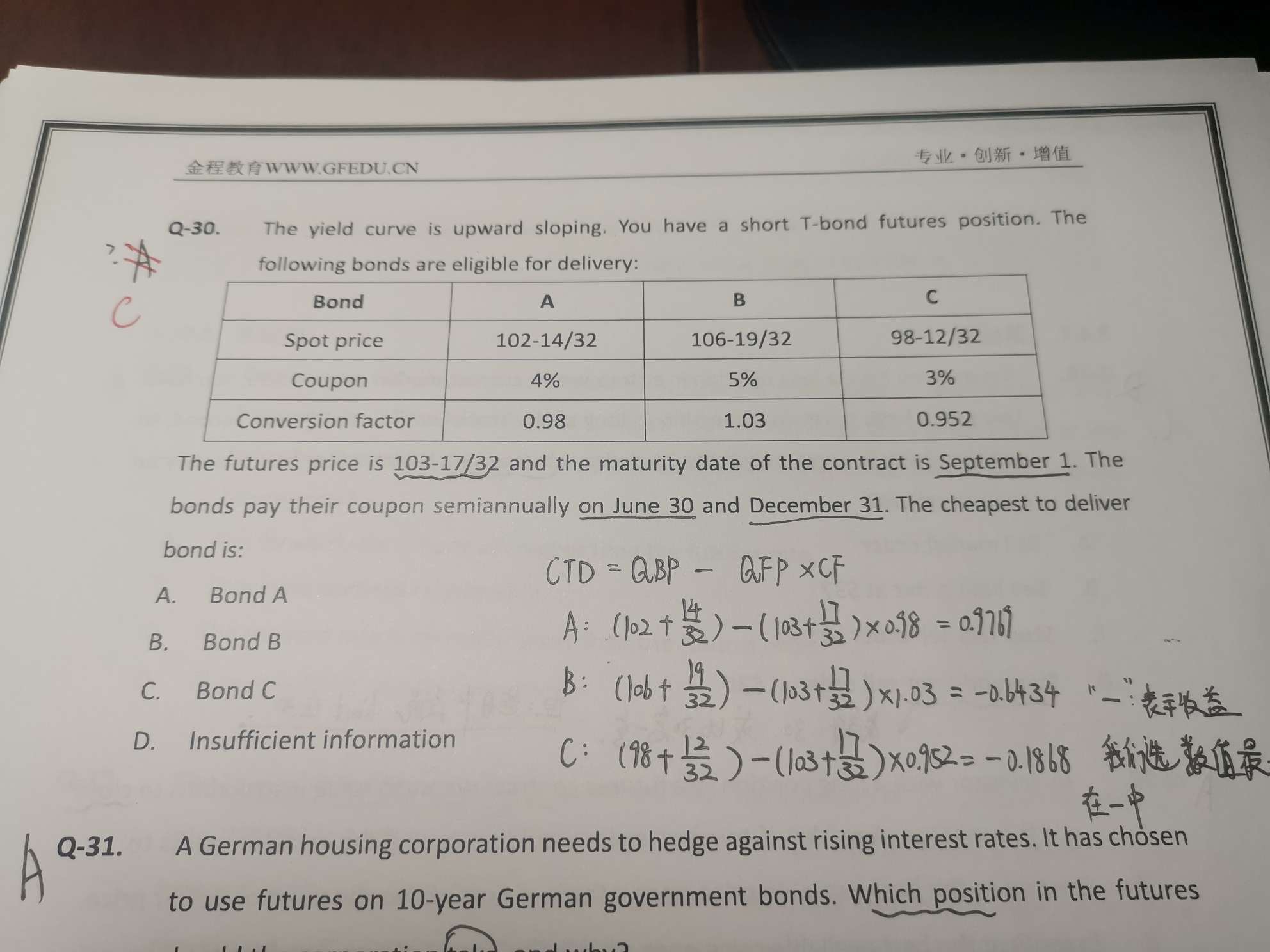 在这个题目中,如果a选项算出来的ctd是正的0.16,C选项是负的0.18,答案是不是仍然选C选项负的0.18?