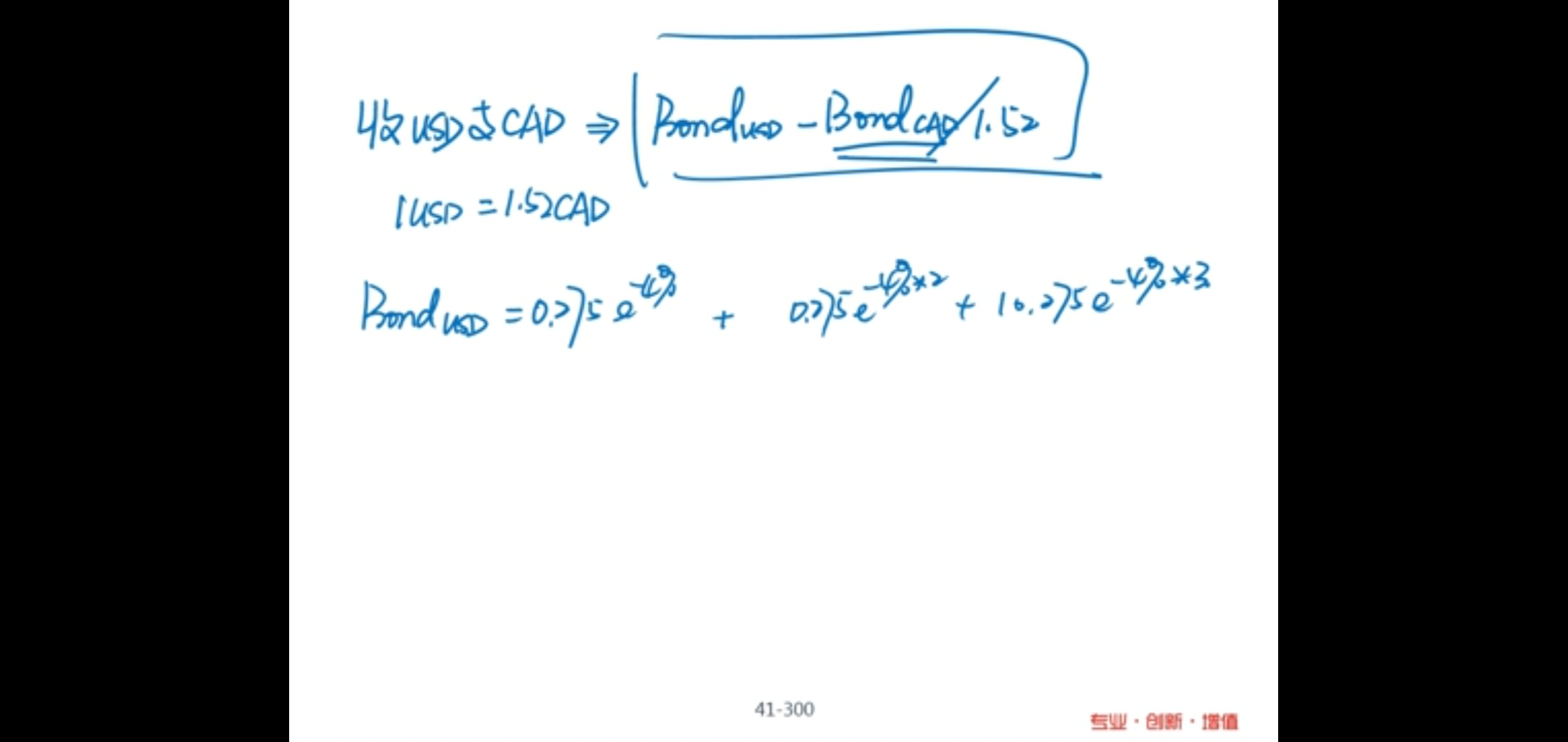 请问66题,算美元的价值e的-4%次方,为什么是负的呀?