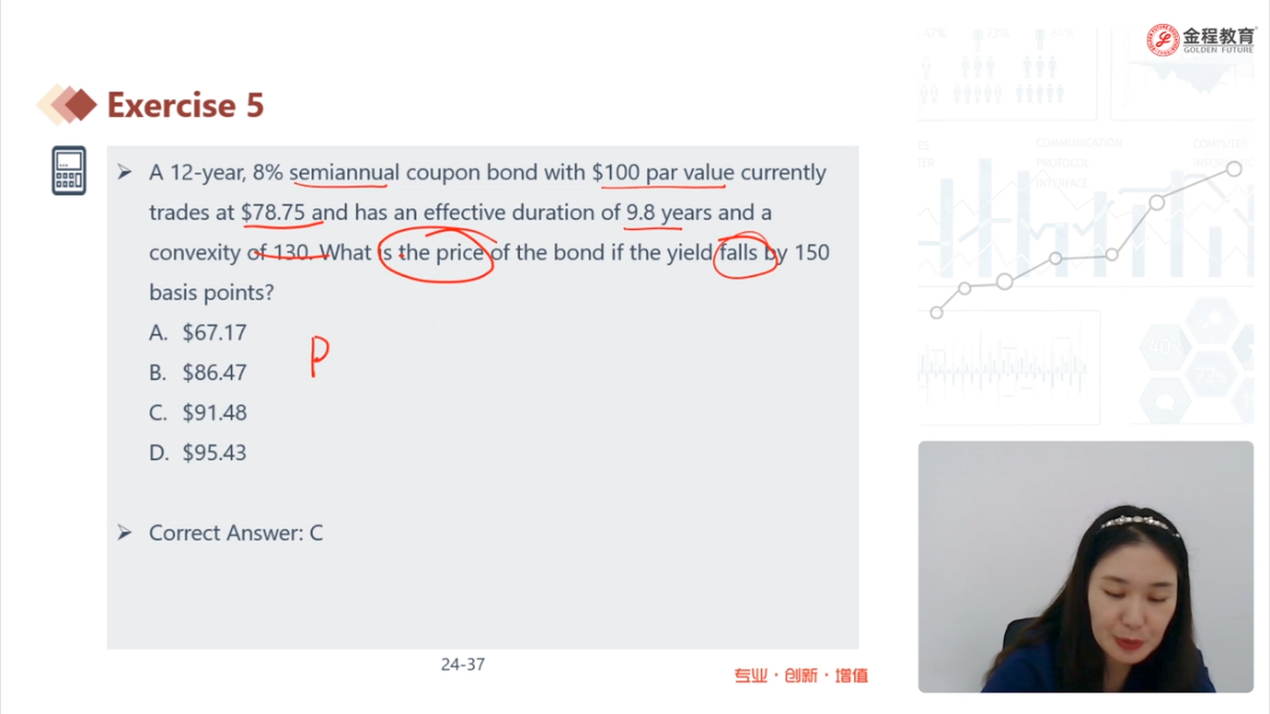 这个题目怎么能想到用视频里讲的公式呢?能立即想到用计算器按,或者带effective duration的公式求出来p大-p小