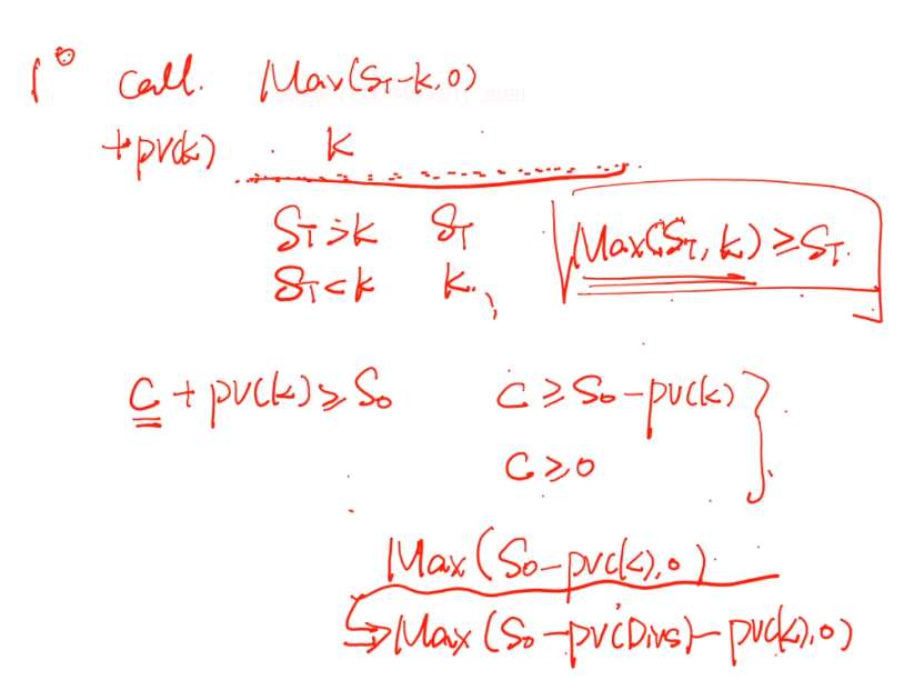 老师您好,Lindsey老师讲到期权定价下限的推演这里,说完未来收益的范围是MAX(St,K)后说“原来已经用过K了”。这一句我就完全听不懂了,请问这步是怎么回事?