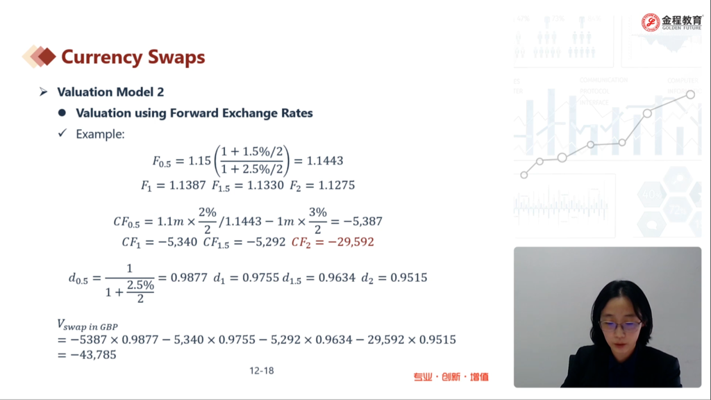 老师,这个Currency swap的两种计算方式有更推荐哪一种吗? 看起来感觉第一种(一个long bonds一个short bond)更容易记住和计算