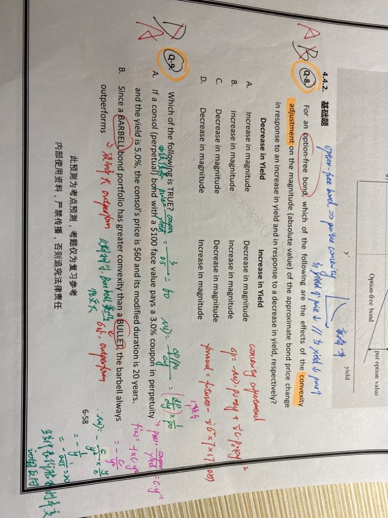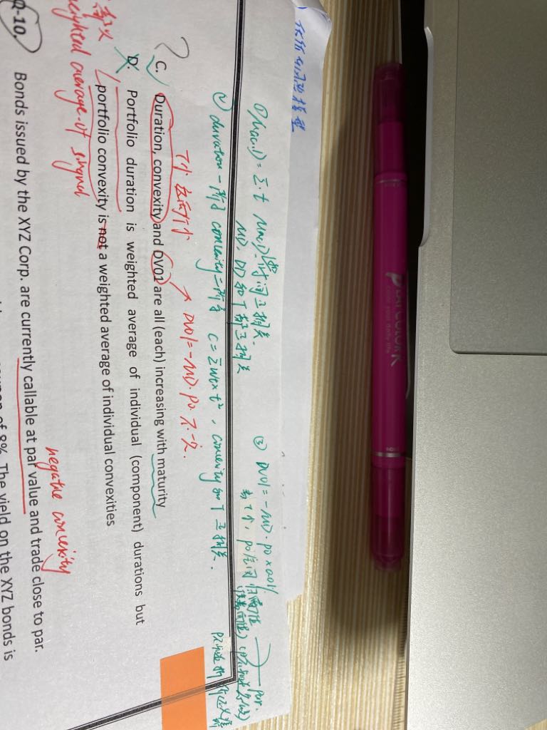 第9题B选项,1.如果说barbell的凸性比bullet大,单独这句话对吗?2.C选项,DD和T怎么变动的,是不是和DV01一样也是不确定?(因为MD✖️P等于DD)