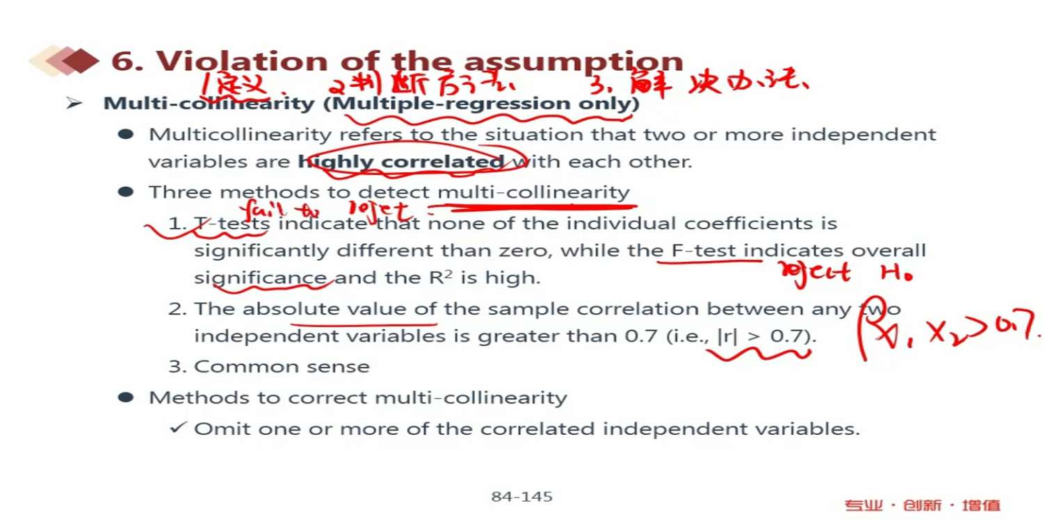 多重共线性的判断是X1 X2之间的相关系数的绝对值>0.7,而重大遗漏变量的大小是和X和残差项的相关系数成正比,请问老师这两个判断的相关系数的不同的么