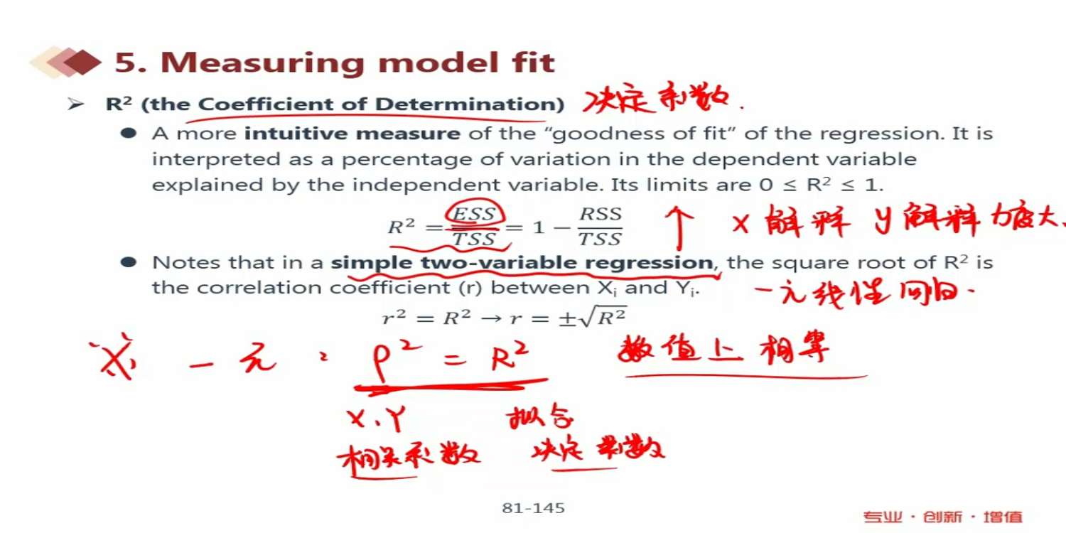 请问老师simple two vabiable regression是什么意思,什么条件下相关系数的平方在数值上等于决定系数的平方