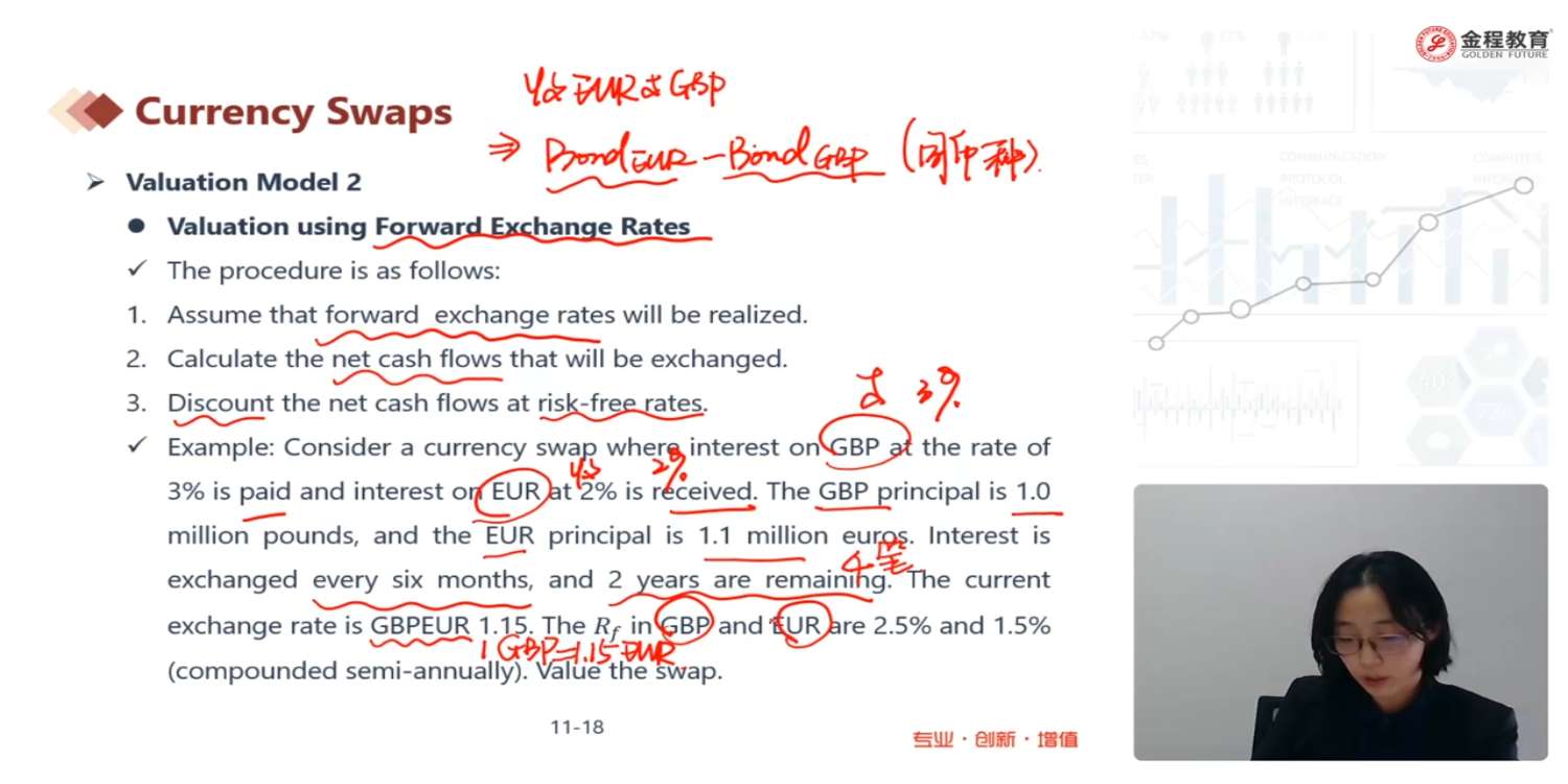 这个地方,如果就先算了英镑、欧元各自所有的现金流贴现求和,再用汇率的即期利率来折算,是不是也可以啊?