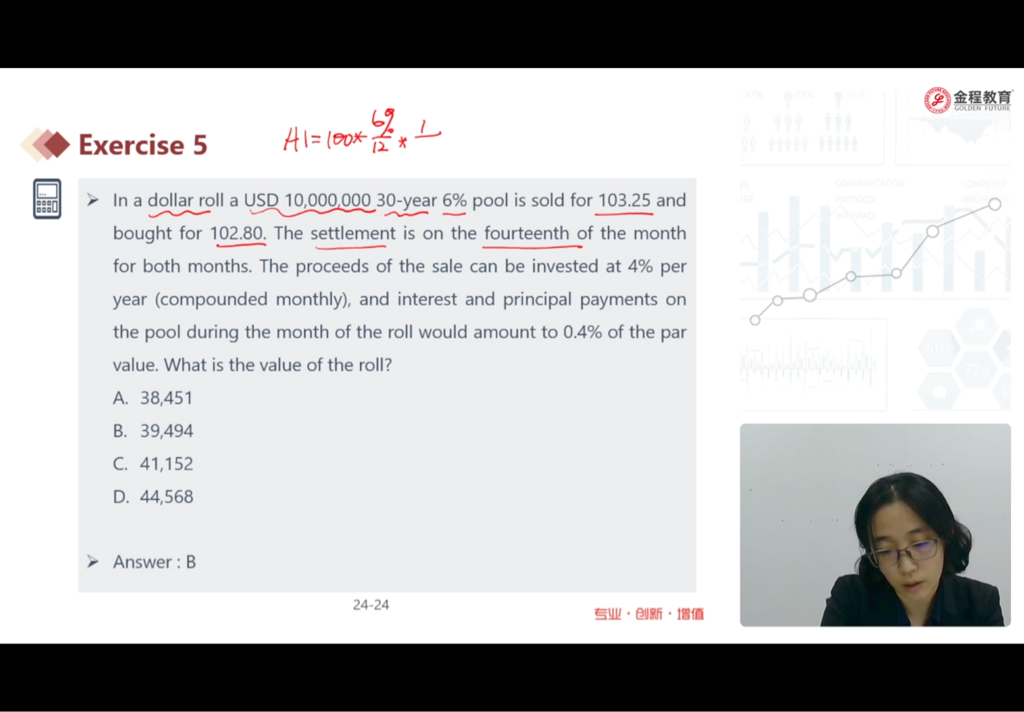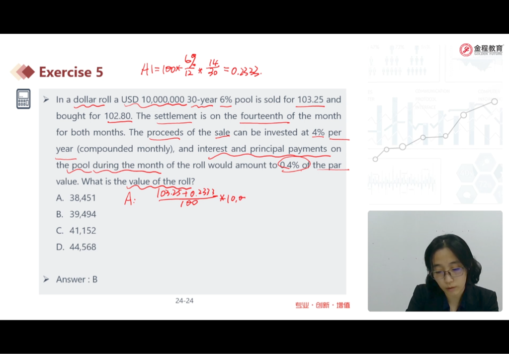 老师,公式中的A是第一个月资产池的售价,而题目说这个资产池was sold for 103.25,为什么不能直接用而是要除以100再乘1000?