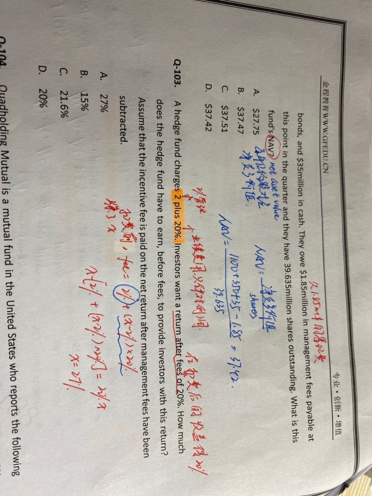 103题,为什么fee这里,2%不要乘以x呢?管理费不是收入x的2%吗?