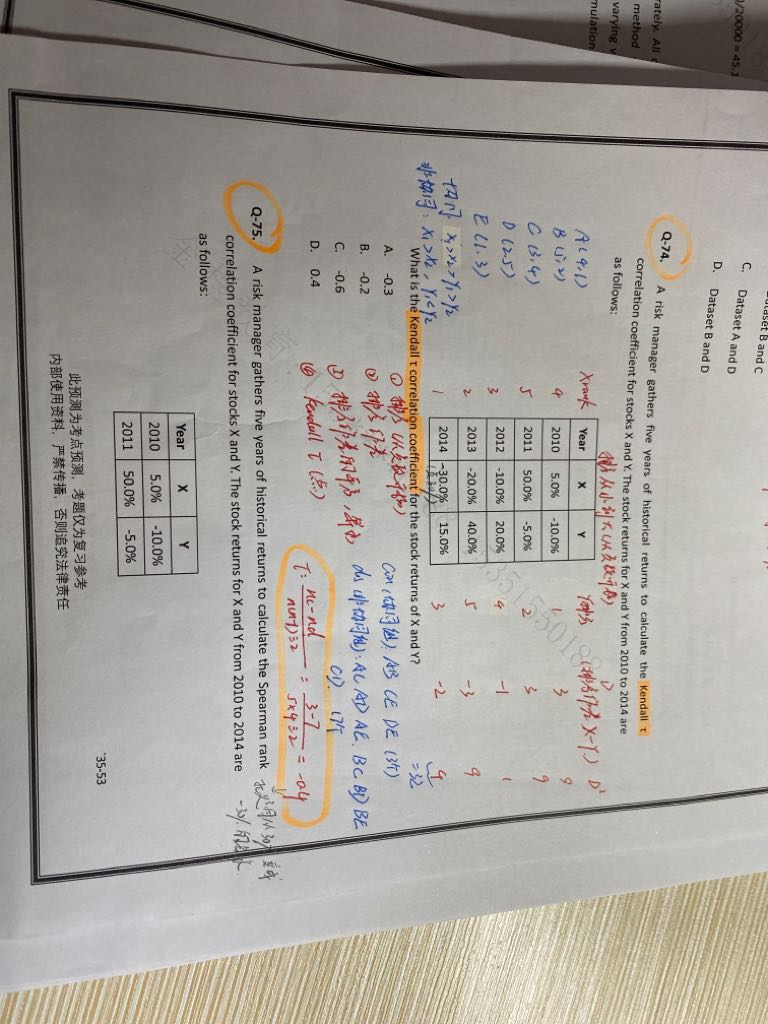 74,75题,kendall和speaman是在哪里出现过的?怎么讲义没看见?是在哪一个ppt到哪一个ppt?