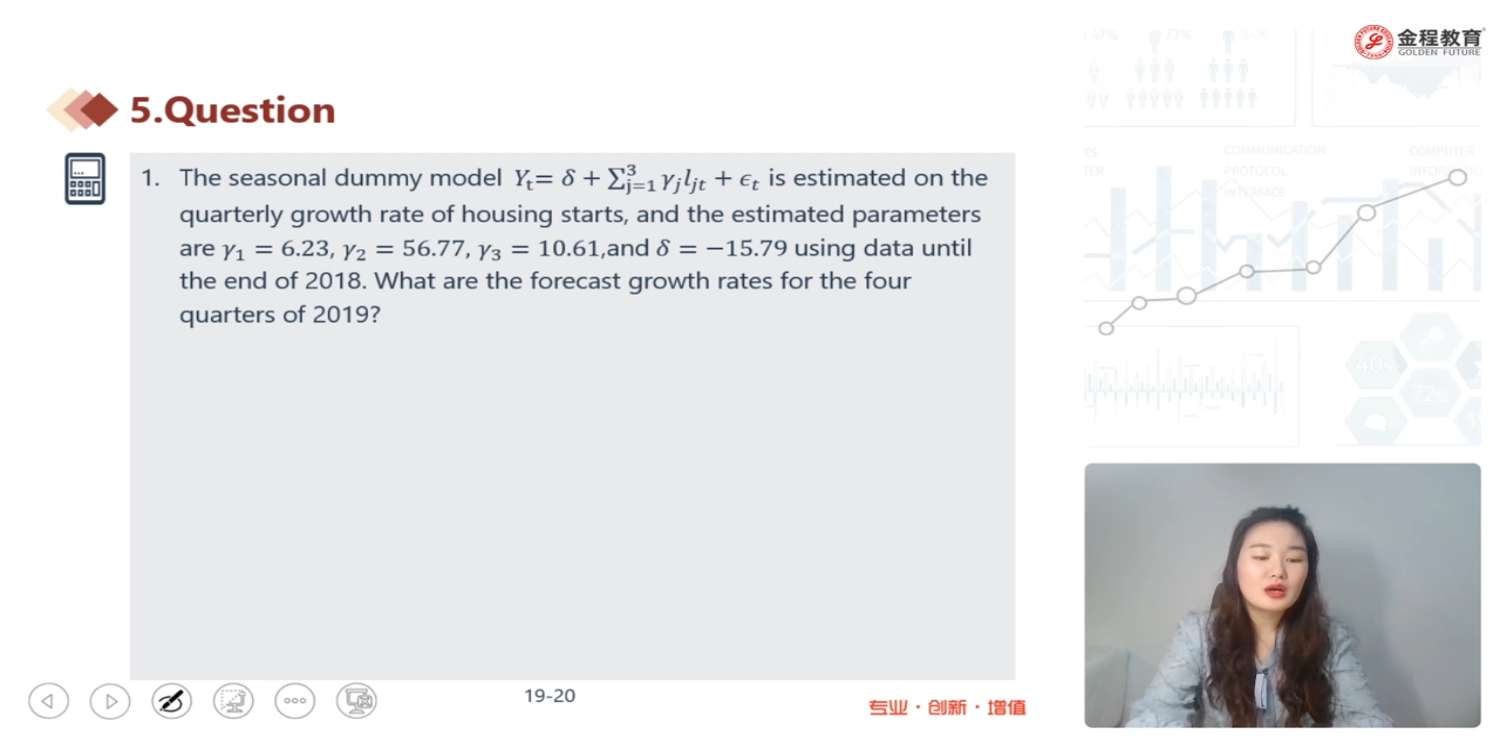 这道题如果问的是2020年的预测值,是不是跟2019年的预测值一模一样?不太明白在有哑变量的时间序列里怎么跨年,因为没有哪个自变量是T