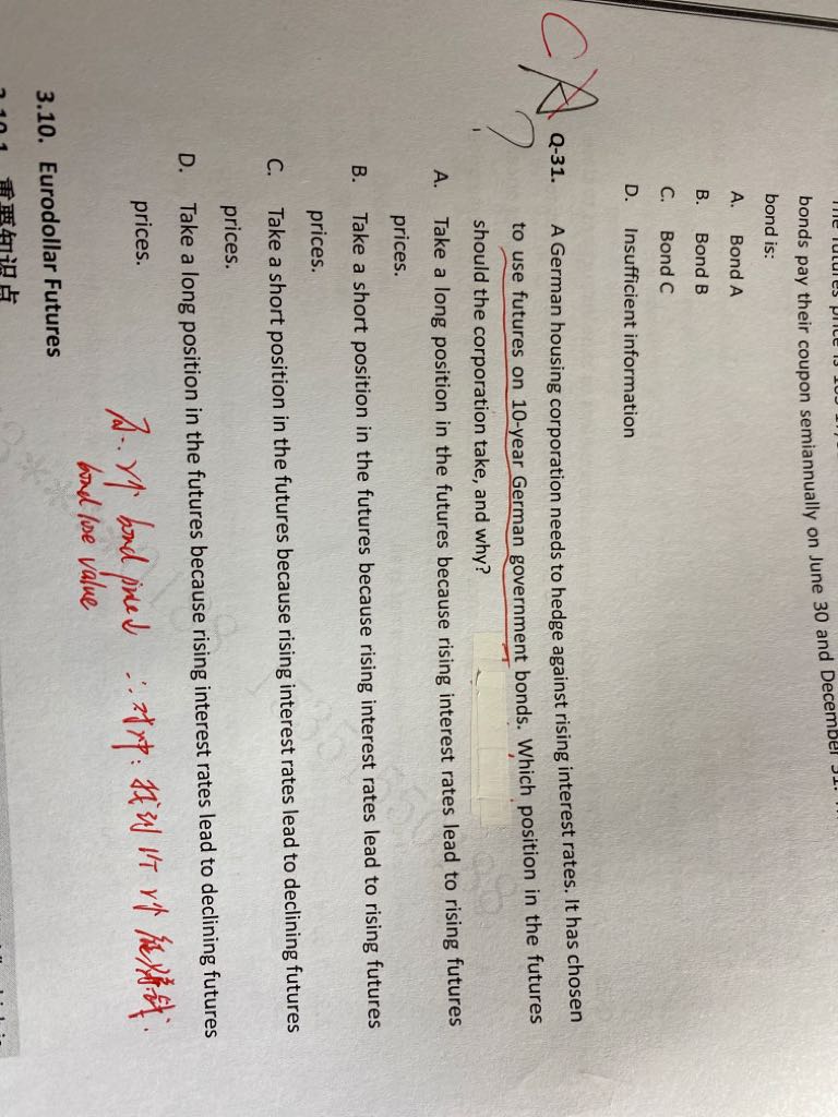 31题为什么选C呢,不是对冲要找一个r上升能赚钱的吗?而只有long futures ,r上升能赚钱啊?(因为固定了买入的K价格)
