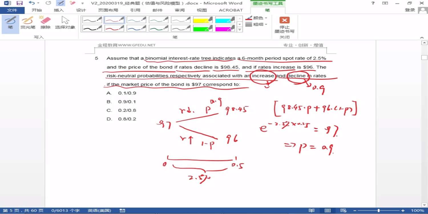 老师请问这道题可以用求P的公式做吗?算出U和D 带入公式。