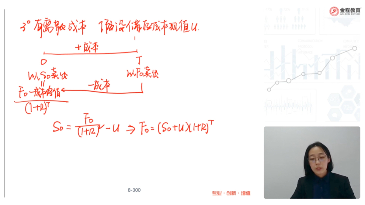 这里不是加收益吗,为什么变成加成本减收益了,那个F0(1+Q)的T次方是怎么来的?
