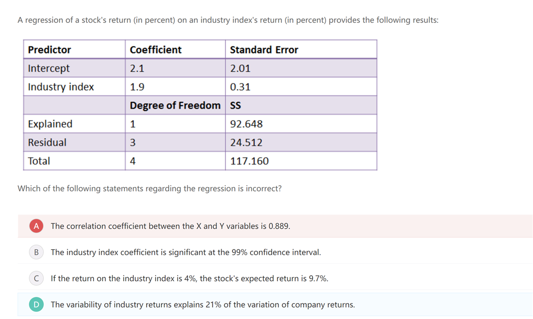 老师,这个50题,是不是按照老师的说法,如果市场组合的标准差和组合a(b/c)的标准差相等,就可以说明只有系统性风险呢?