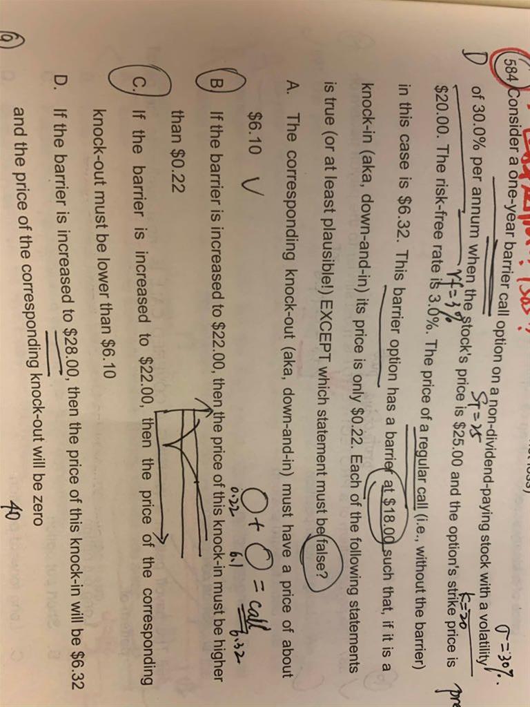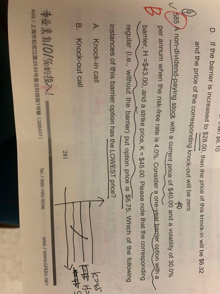 老师,这道关于障碍期权的题看不明白,请帮分析一下,涉及的知识点,谢谢