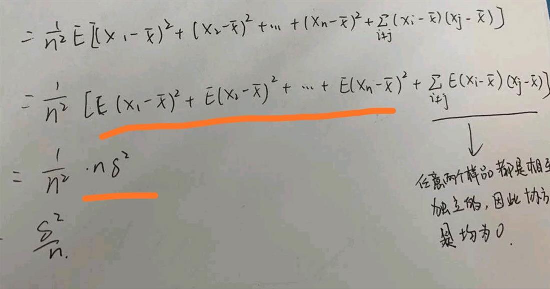 老师好,还是上次关于样本均值方差推导的问题补充,如图所示,烦请解答。谢谢