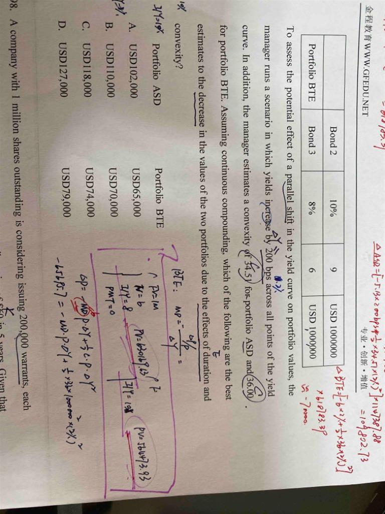 请问这道题是不是表示计算器第三排的计算是不包含凸性的?因为我按照上升200个点来算,价格的变化是65000左右。