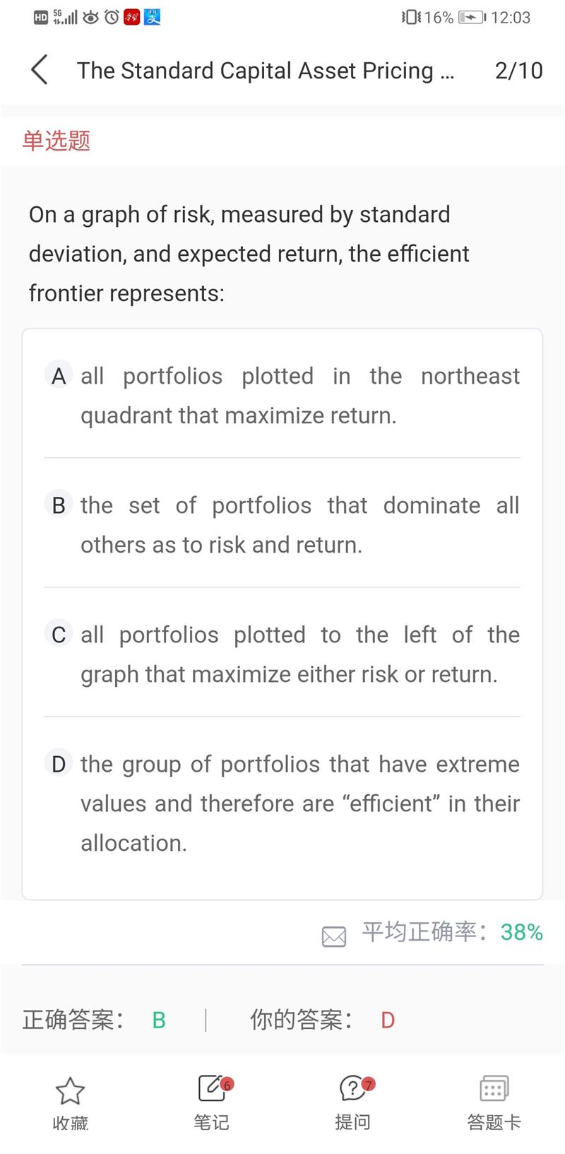 这个B是什么意思?所有风险收益的组合吗?那这个也不是马克维茨的定义呀?另外D的意思不是对应同一风险所能获得的最大收益吗?
