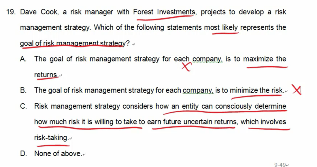 19题,如果AB两个选项合起来是对的吗?risk management goal就是minmize risk的同时maximize returns.