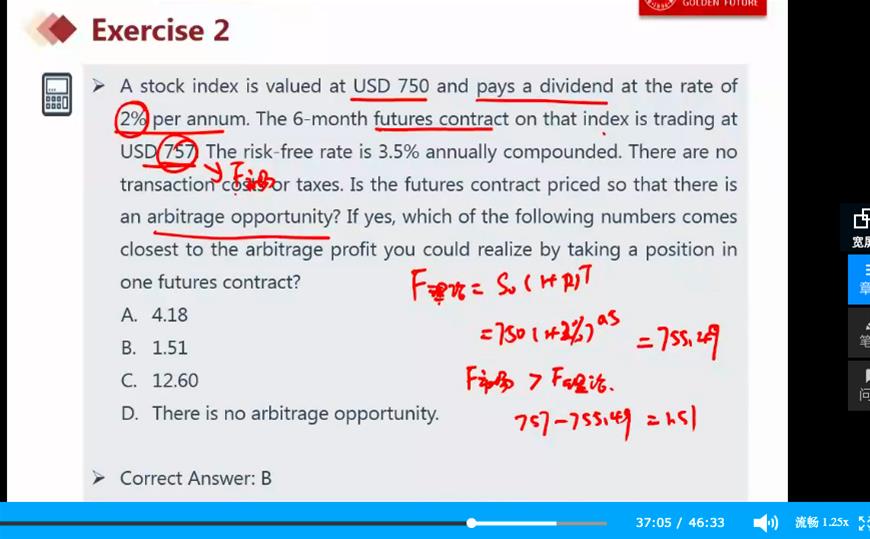 老师这个题,3.5%是无风险利率,2%是分红,难道不是乘1+3.5%除1+2%吗?