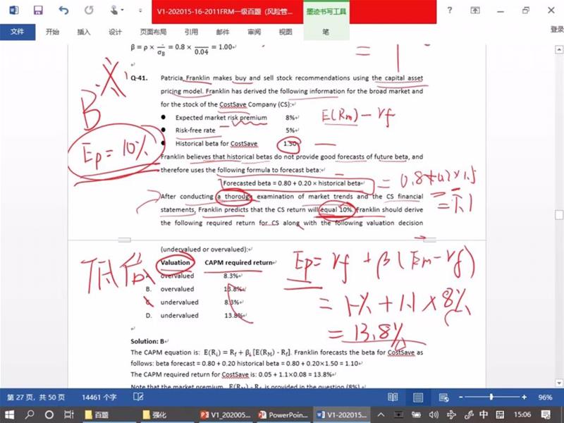 为什么换为valuation选啊,是换的哪里的return呀,题干中的还是选项中的