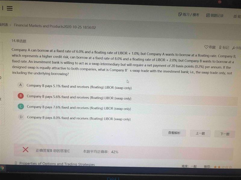 请问老师,答案也可能是那种只要组合出来结果是赚0.4%都可以吗?5.6%是怎么得到的?谢谢