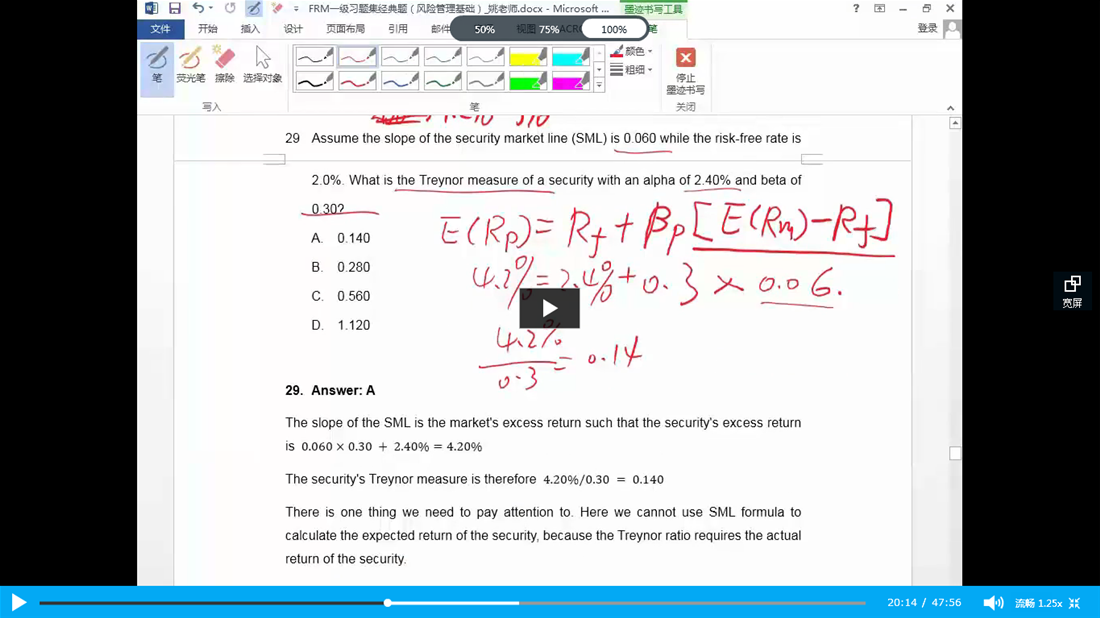 请问老师关于图片这题有几个点没懂,1:题目中的alpha指代Rf,是通用情况还是这道题的特殊情况?2:为什么SML中的Rf不用2%而用2.4%? 3:老师说的Treynor Ratio是求风险溢价,为什么分子不根据Rf的变化(从2%到2.4%)做调整?谢谢