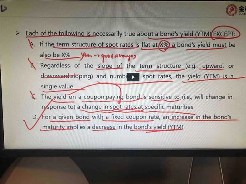 请问老师,怎么理解d选项说discount bond情况下,ytm会随maturity增加减少,谢谢