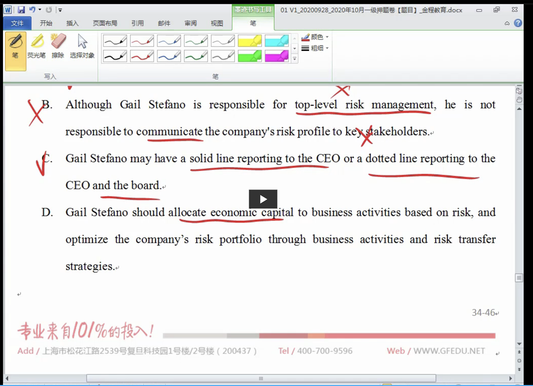 73题c,和强化班么老师讲的不一样(图二),实线汇报机制是cro直接向董事会汇报,但是73题实线是cro向ceo汇报,哪个是对的?