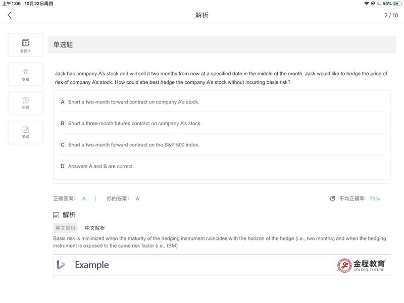 老师我想问一下,如果这题没有A选项的话,我们可以用future来对冲这个stock嘛,因为之前我们讲那个金融案例forward不能用futures来对冲因为期限不匹配,所以我想问一下stock可以用futures来对冲嘛,谢谢