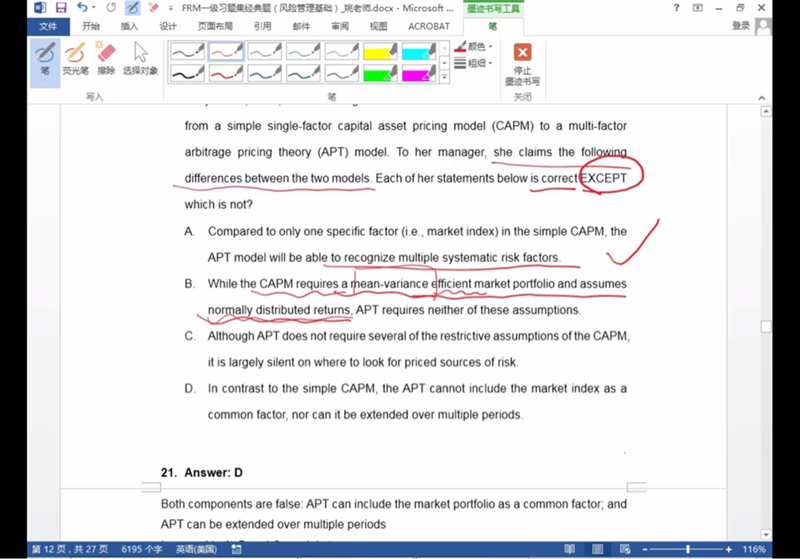 CAPM不是可在无效钱眼里吗B选项说要求有效的。 为什么是对的啊