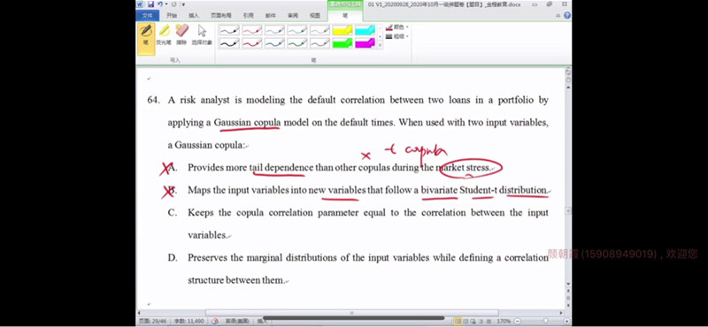 老师,您好,这一题Gaussian copula model没太听明白,这个跟相关系数是什么关系呢,不是概率和分位点的映射吗?感谢老师讲解一下吧。