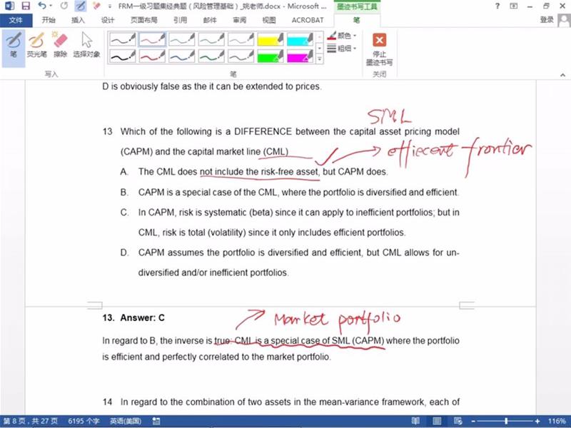 老师好,为什么CML是SML的特例,我理解CML描述总体风险和预期收益的关系,SML描述系统性风险与预期收益的关系,SML应该是CML的特例。