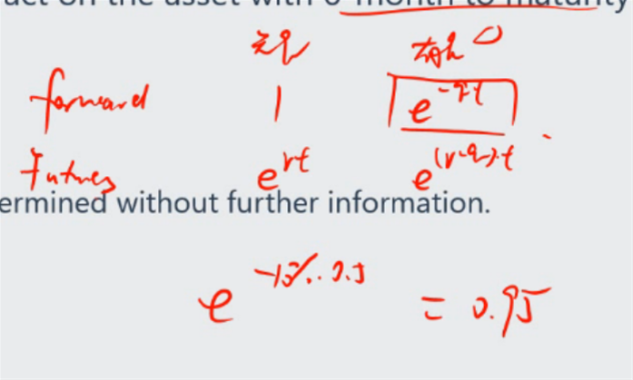 老师的笔记这里我有点疑问,关于futures的delta我记得上课的时候老师推导出来是e^(-rt), 但是老师这里写的是e^(rt),想知道哪一个是对的。谢谢