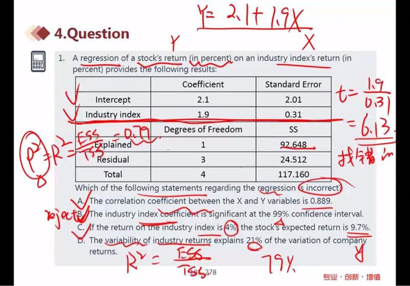 第四个选项不太懂。 题干从哪里翻译出 是x能解释多少的y。 为什么就是问的r的平方
