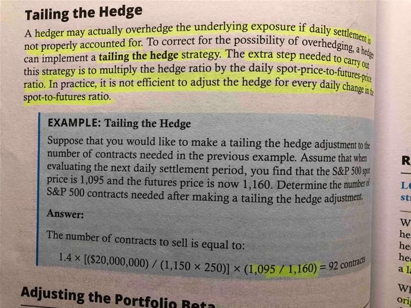 请问老师,尾随对冲是对value of spot 与value of future的调整由于daily settlement,对吗?我对里面1095/1160不太理解,我认为应该是1095/price of port p0 与 1160/ f0这两个数值比较,才是期末的port value/future value