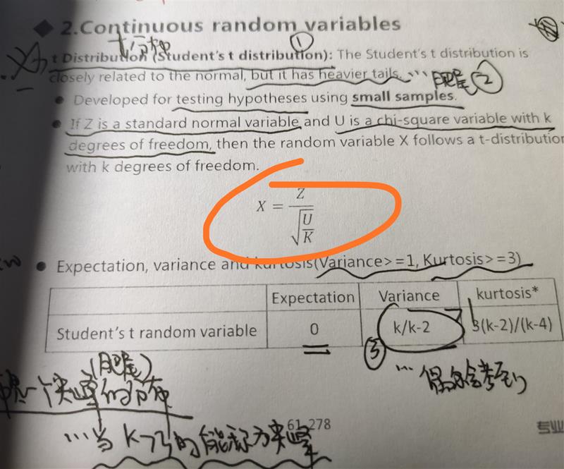 老师好,在介绍t分布的课程中,高老师只是简单一句带过地说了t分布的均值是0。其实我还是有点疑惑的..能否麻烦老师您用图中画圈t分布的公式来推导一次Expectation等于0呢?谢谢