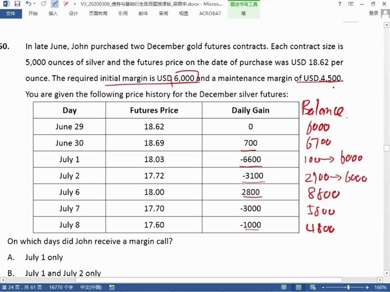 请老师看一下这个题,这两个题一个是每天的损益,还有一个是和期初的损益进行比较。但是和期初的损益进行比较的时候,在后面追加保证金应该怎么加,加到初始以后balance实际是多少,和每天计算损益比起来很容易混淆,麻烦再讲一下