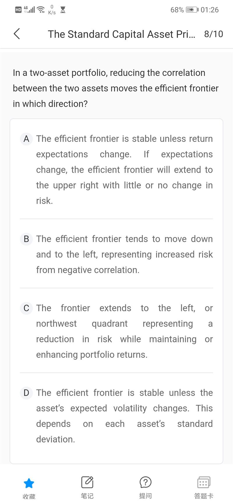 计算beta的时候,当相关性降低时,不是bata也会降低吗?这就会降低预期收益率,但是视频中老师讲解说相关性降低降低了风险,但是却不会降低收益率,为什么?