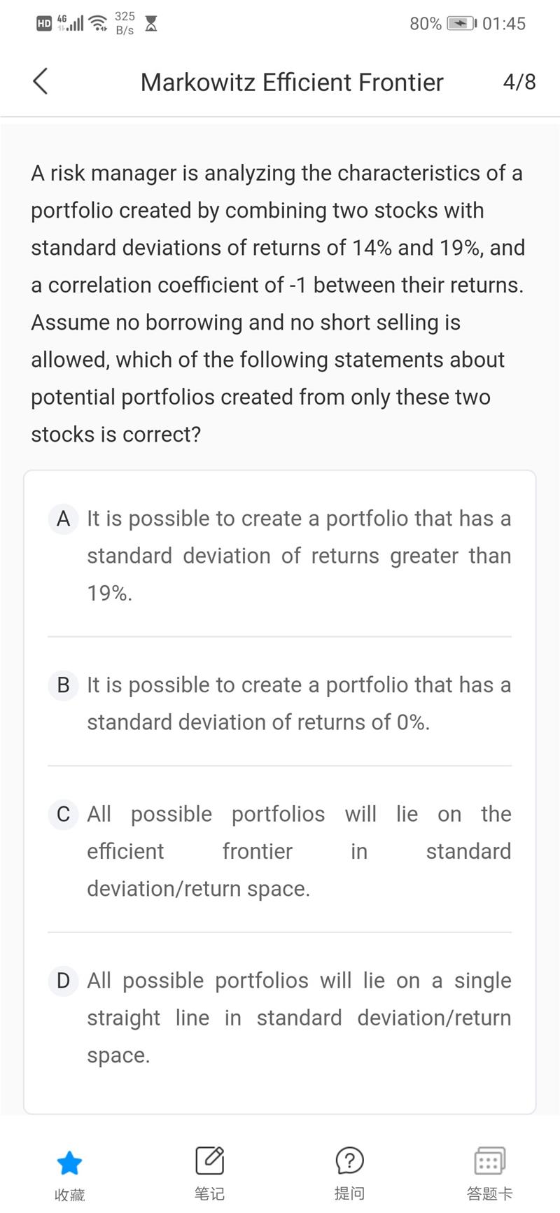 C中所有组合都在有效前沿上这显然是错的,那有没有可能有些点就落在有效前沿上呢,如果有,麻烦老师举例说明