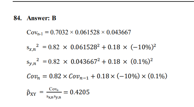 84题啥情况,一会t-1的收益率,一会t的收益率,到底弄那个?按照公式要求都是t-1的,为啥老师用t的收益率,而且最后算t天的cov ,那个收益率是哪天的?