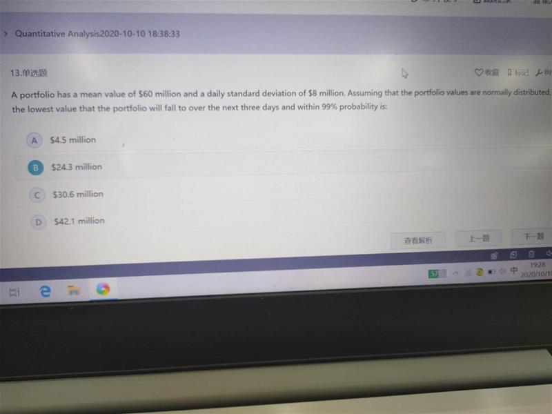 请问一下这个题目怎么做,portfolio的均值算样本均值还是算随机变量?分母是标准误还是标准差?截图中王家根说的知识点是哪个?从小到大用乘法?好像没听过