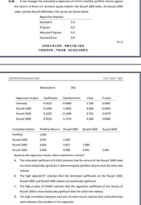 1、A选项,百题讲题老师说,像罗素3000的系数那么大,自己都不显著,还跟其他系数比较,所以A选项错误?我想问,就算罗素3000系数小,统计学显著了,其他系数也统计学显著,怎么比较谁更加统计学显著?