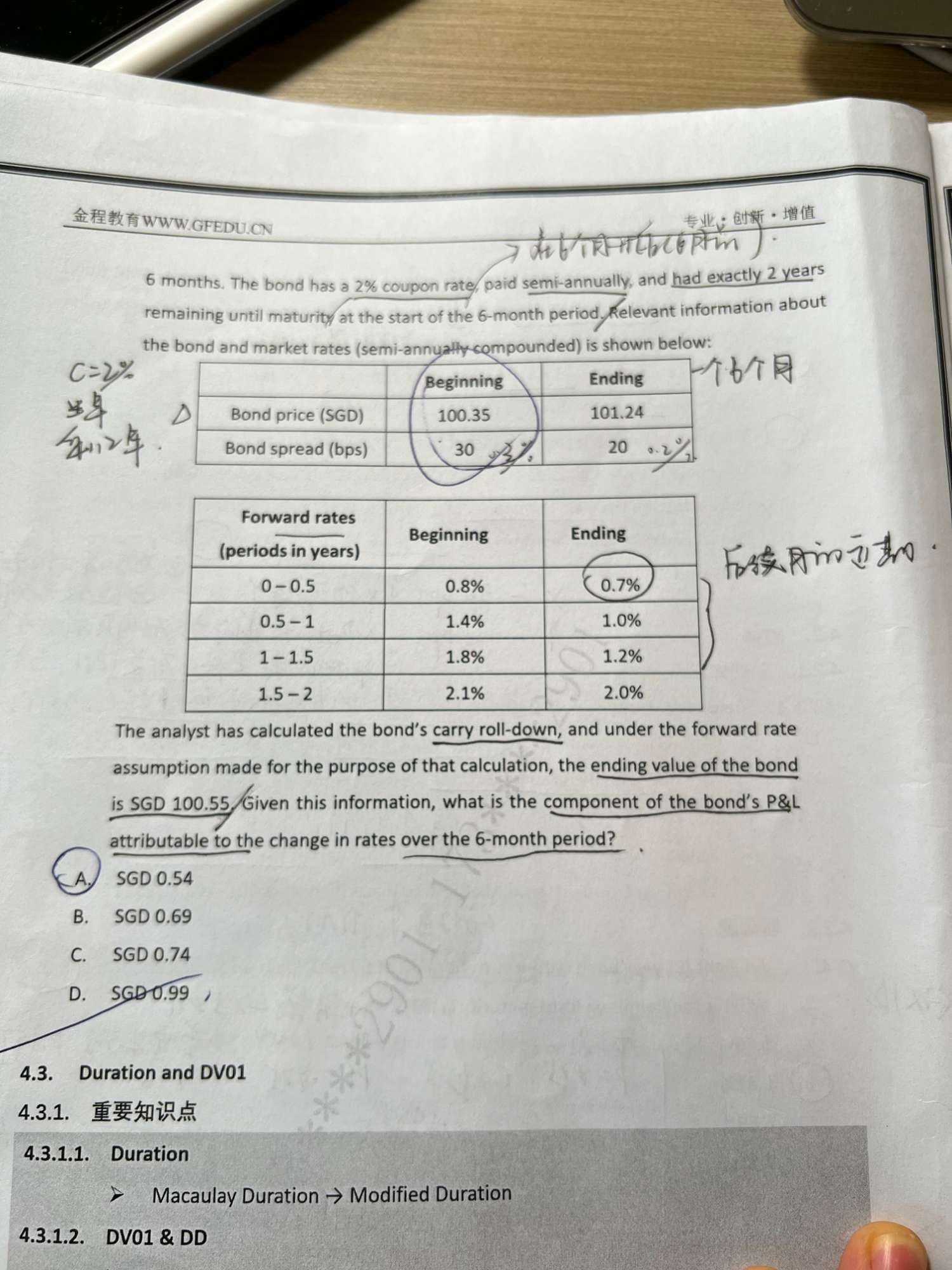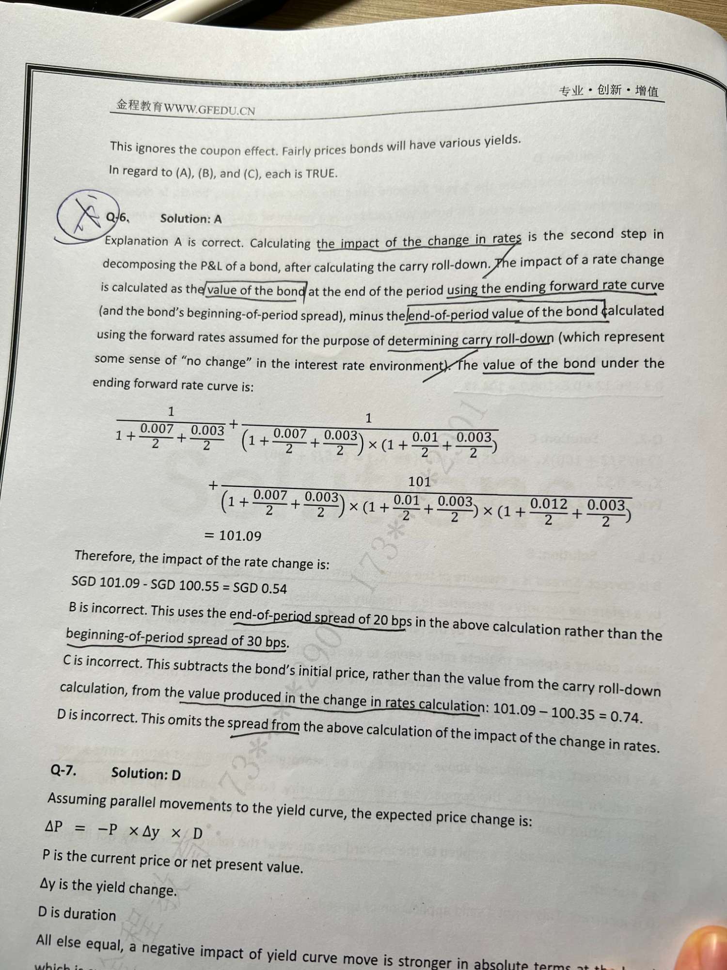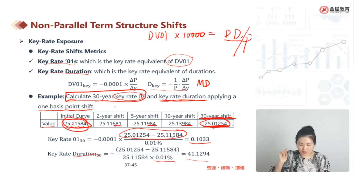 最下面一行计算,为何要除以1个基点,没听懂,题目里本来就说了现在是变动一个基点得到表格里相关参数,已经内含到参数里了
