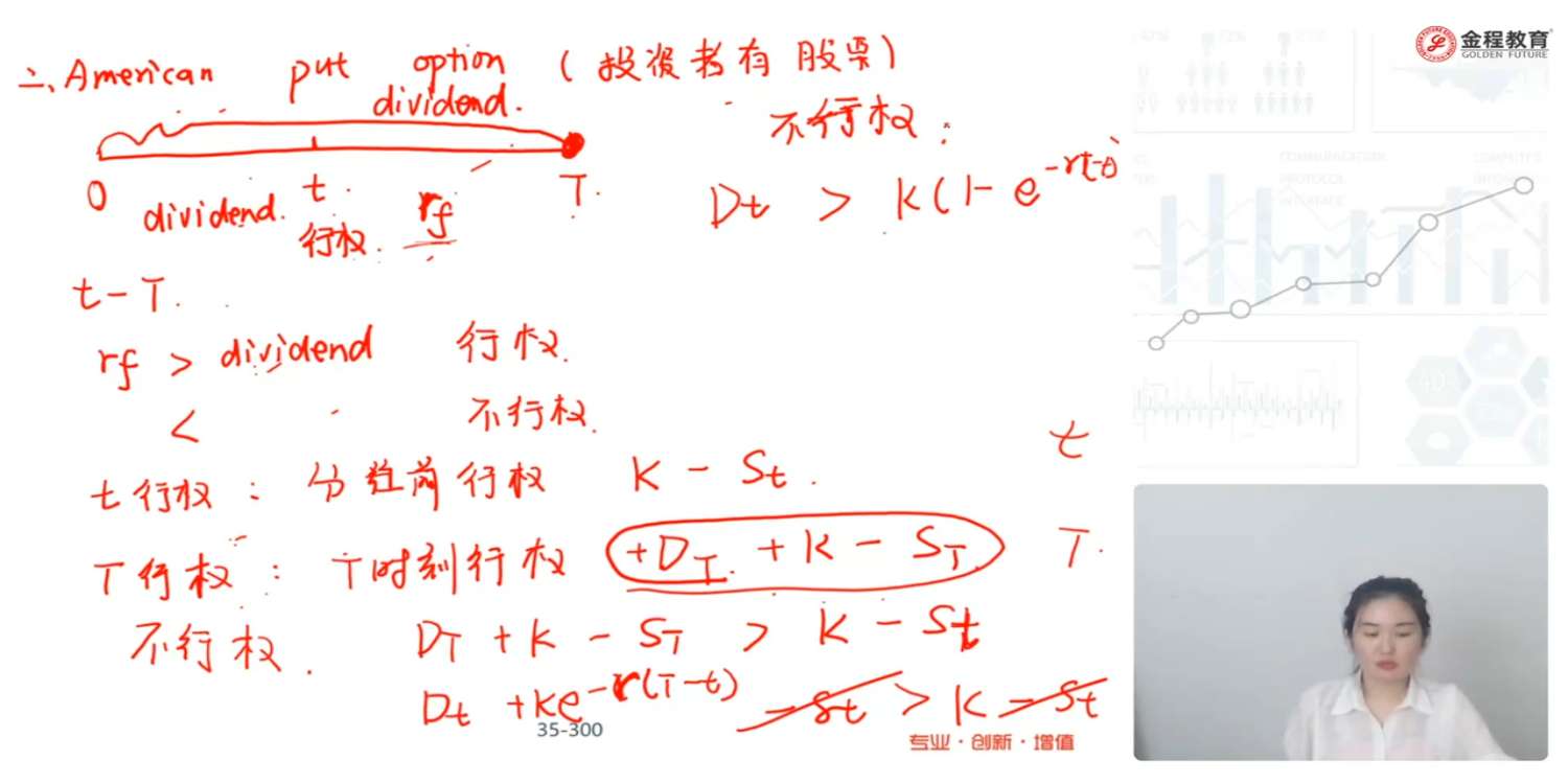 这里为什么St和ST可以直接消掉啊,不同时间的标的资产价格应该不一样吧,还有看跌期权不能在分红之后马上卖出吗,为什么也是在分红前行权?