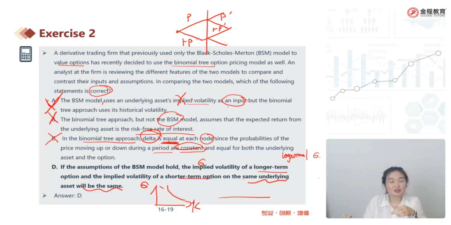 这道题C选项能解释下后半句equal for both the underlying asset and the option对不对吗