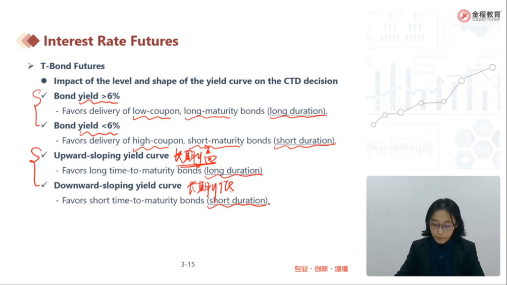 没听懂这页ppt对CTD筛选方法的解释,包括对久期和coupon,maturity的解释,还有第一个bond yield不是表示债券的收益率吗,为什么会是市场利率?