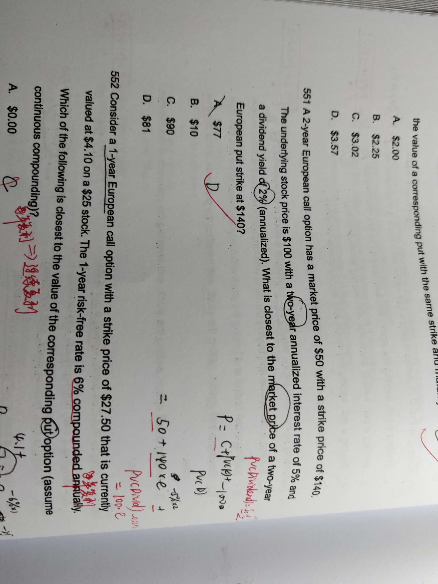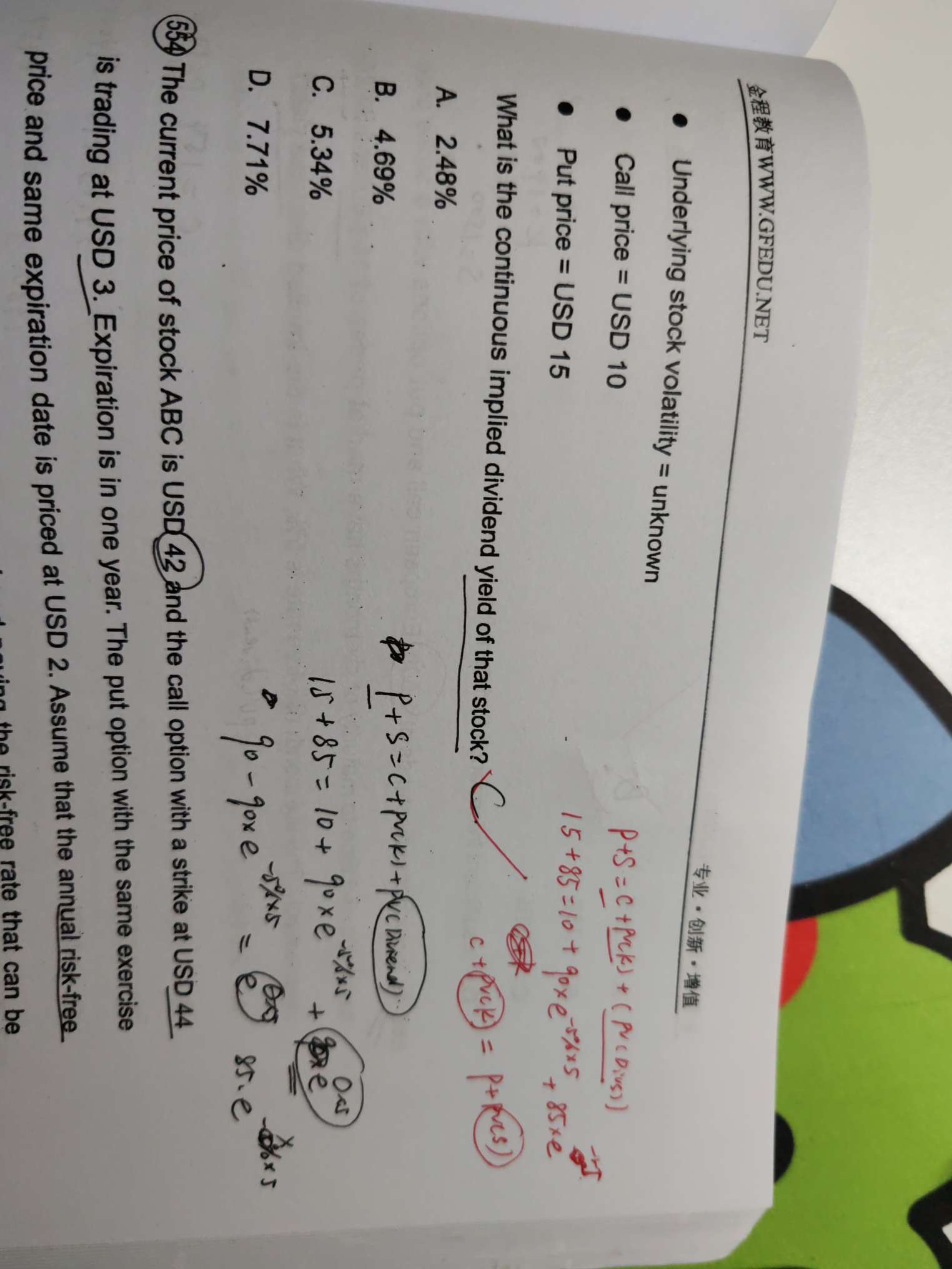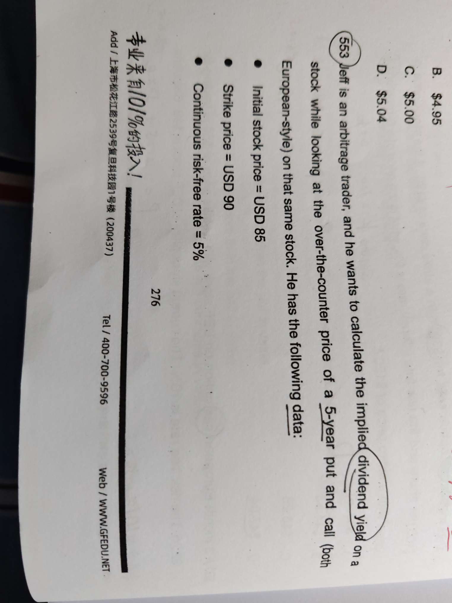 老师您好,我有个疑问,为什么这两道题,其实都涉及到红利的计算,第一道题是将资产和红利分开来算的,也就是我书上看到的平价公式,第二题为什么直接就是将资产折现,按照红利率?不是很明白这两道题有什么差异?谢谢老师