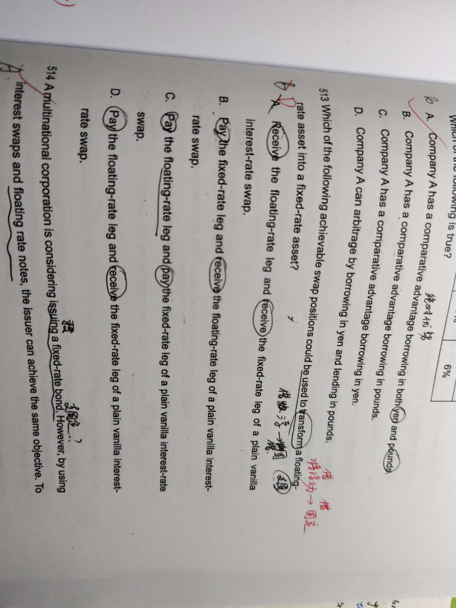 老师您好,可以解释一下这道题目吗,题目问的是将借浮动转化为借固定,那么对于互换来说,不应该是收取一个浮动,这样就抵消了浮动了,然后再支出一个固定吗,为什么不选b,是我哪里有误解了吗,谢谢老师