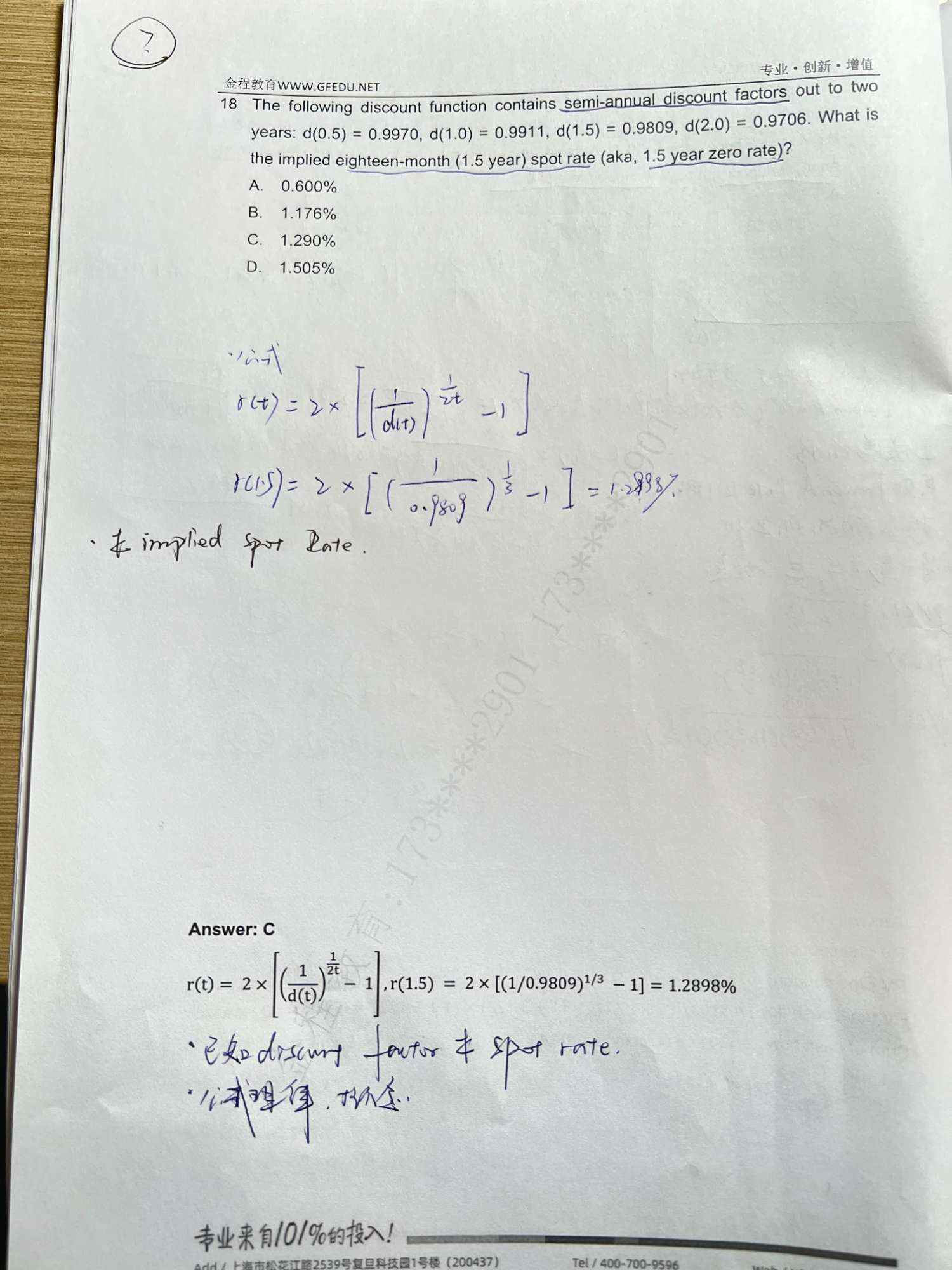 老师你好,请问第18题的知识点implied spot rate是哪一部分的呢?这个计算公式是如何推倒的呢?不知道为什么这样做。