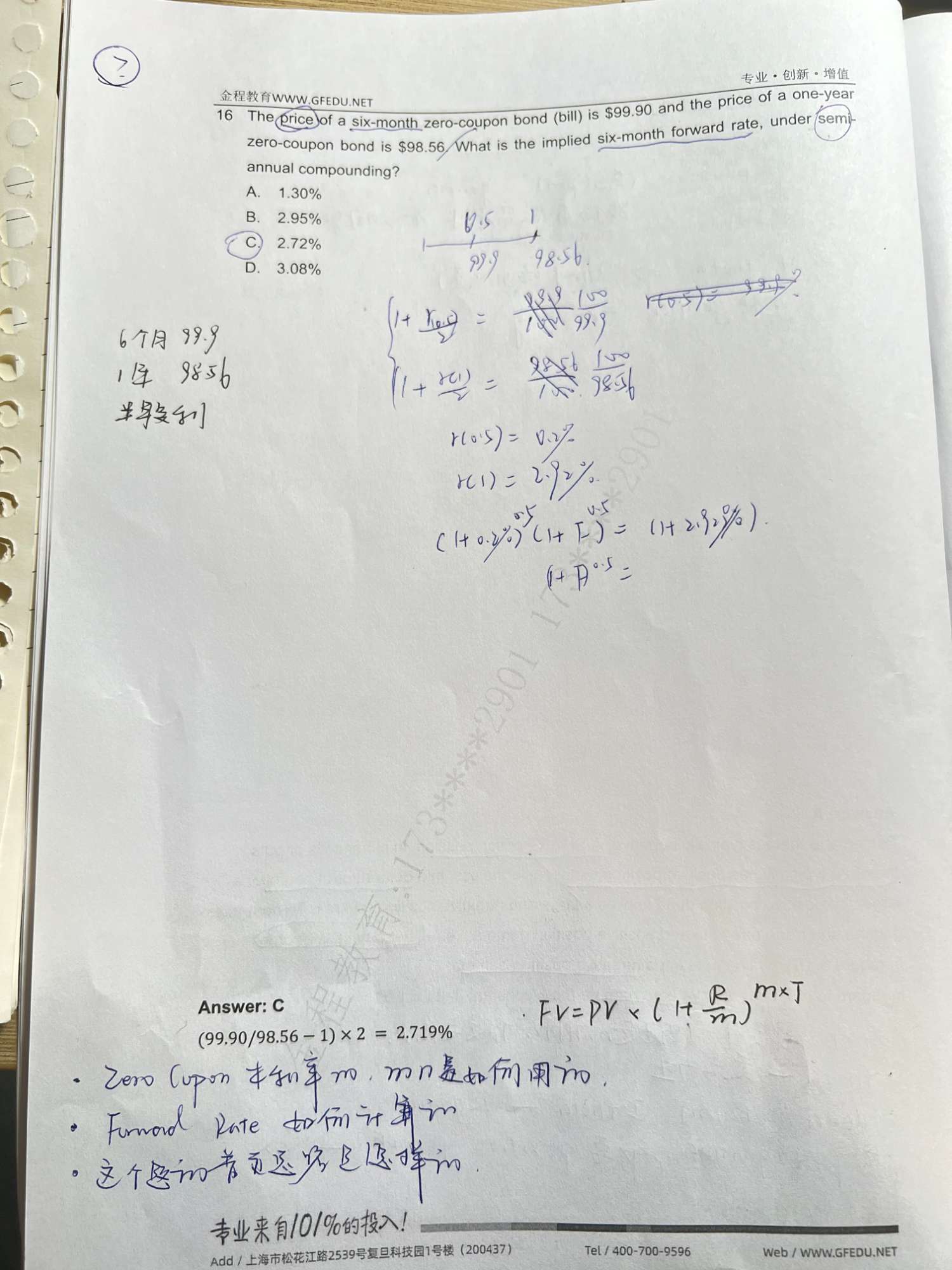 老师你好,请问第16题的知识点implied forward rate是哪一部分的呢?这个计算公式是如何推倒的呢?不知道为什么这样做。